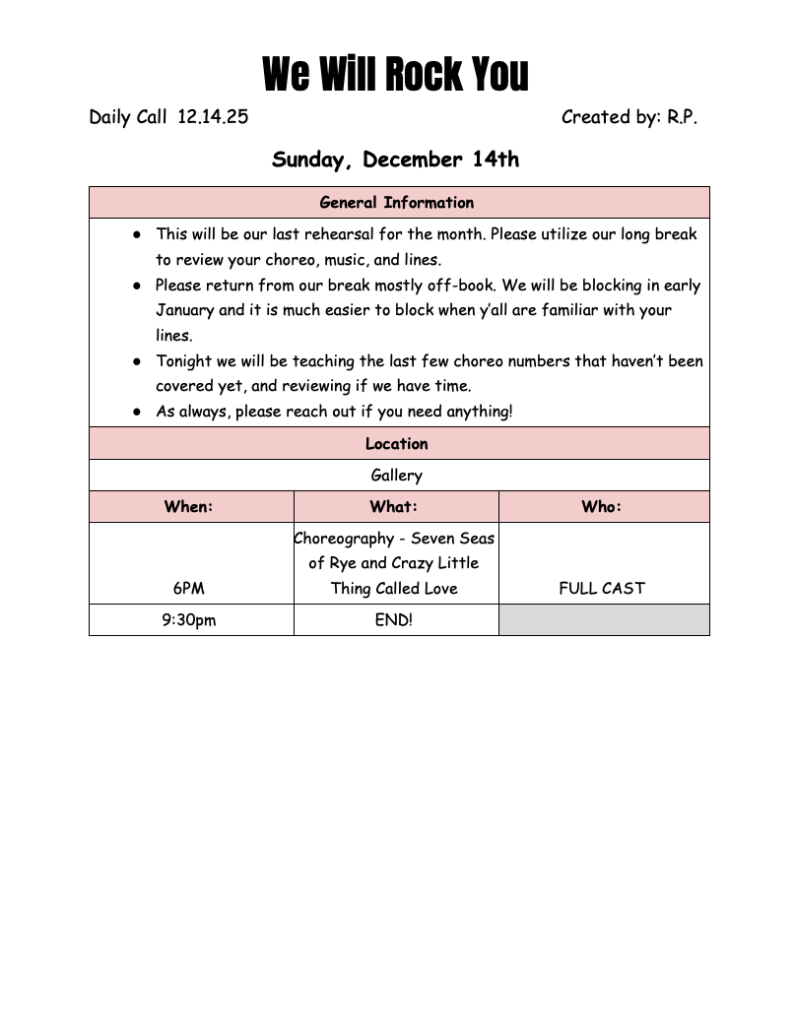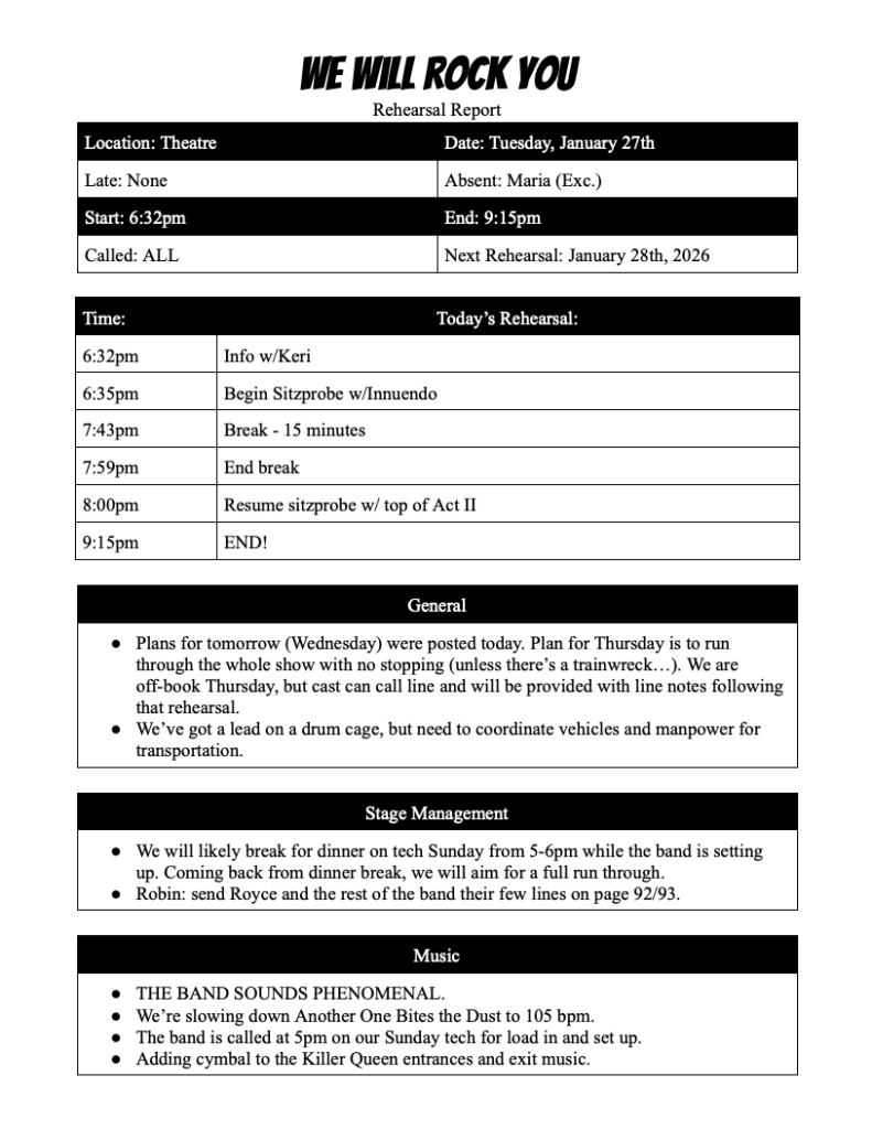 Rehearsal Report